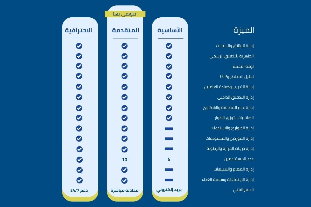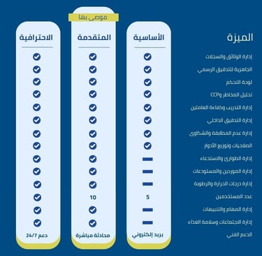 نقدم لك نظام إيزو بلس عبر باقات سنوية مرنة مصممة خصيصاً لتنقل منشأتك من الإدارة التقليدية إلى الكفاءة الرقمية الشاملة. اختر الخطة التي تمنحك السيطرة الكاملة على معايير الجودة لديك